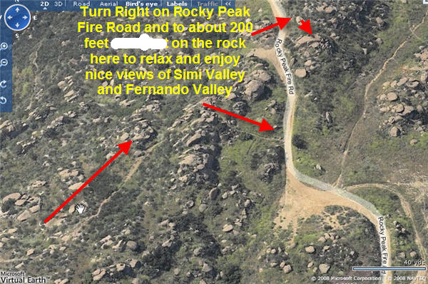 Once you hit Rocky Peak Fire Road, turn right and go few hundred feets and then climb up few feet on the big rocks on your right. They give very relaxing views of Simi Valley on the west as well as whole San Fernando Valley on the east side!