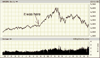(Nasdaq had great rally from 2800 on October 12, 1999 to almost 5100 by April 2000 and then again back to 2500 level on November 29, 2000. Didn't you wish you knew this great fluctuation? Well read the following email that I sent out to my friends on October 12,1999.)